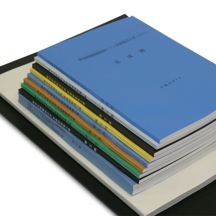 製 本 持ち込み図面・書類でも歓迎します。※コピー・データ出力なども取り扱っております。ぜひご利用ください。 図面製本 その他製本 HOME | 製本 | 商品詳細 | バインダー式製本 バインダー式製本 金文字黒表紙のような厚手の表紙に、2穴・4穴・30穴などのバインダー用金具を取りつけた製本です。ビス止めよりもさらに用意に差し替え可能で、厚さは2〜10cmとさまざまな厚さに対応しており、大きさもA3やA4サイズはもちろんのこと、A1・A0サイズなどがそのまま綴じることのできる製本も作成できます。表紙も多くの種類に対応しているため、オリジナルのバインダーが作成可能です。 商品名:バインダー式製本 主な用途:完成図書、報告書、取扱説明書など ご一緒によく注文される商品 二つ折製本 ビニール袋入り製本 ダイヤスカーフ製本 ビス止め式製本 トップぺージ 製本 箔押加工 データ入出力 コピーサービス ラミネート加工 料金表 会社概要 お問い合わせ お電話でのお問合わせ 052-881-1211 営業時間平日8:30-18:00