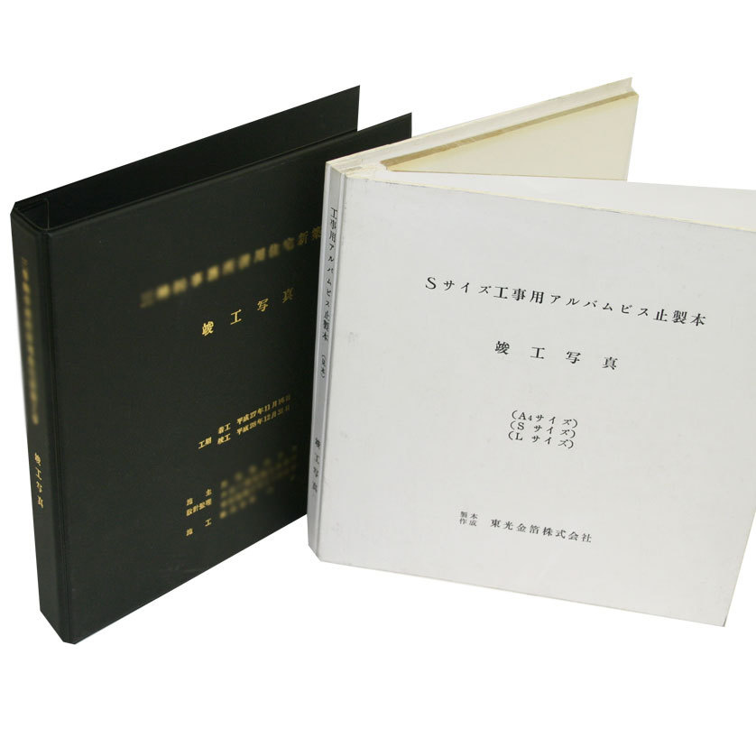 製 本 持ち込み図面・書類でも歓迎します。※コピー・データ出力なども取り扱っております。ぜひご利用ください。 図面製本 その他製本 HOME | 製本 | 商品詳細 | 工事アルバム製本 工事アルバム製本 施工過程や完成時の写真をアルバム台紙に貼り付けて、黒表紙や白表紙に文字を入れて製本するタイプです。主に工事完成後の引き渡し時などで使用されることが多いものです。 商品名:工事アルバム製本 主な用途:完成写真・竣工写真など ご一緒によく注文される商品 ビス止め製本 二つ折製本 バインダー式製本 二つ折上製本 トップぺージ 製本 箔押加工 データ入出力 コピーサービス ラミネート加工 料金表 会社概要 お問い合わせ お電話でのお問合わせ 052-881-1211 営業時間平日8:30-18:00